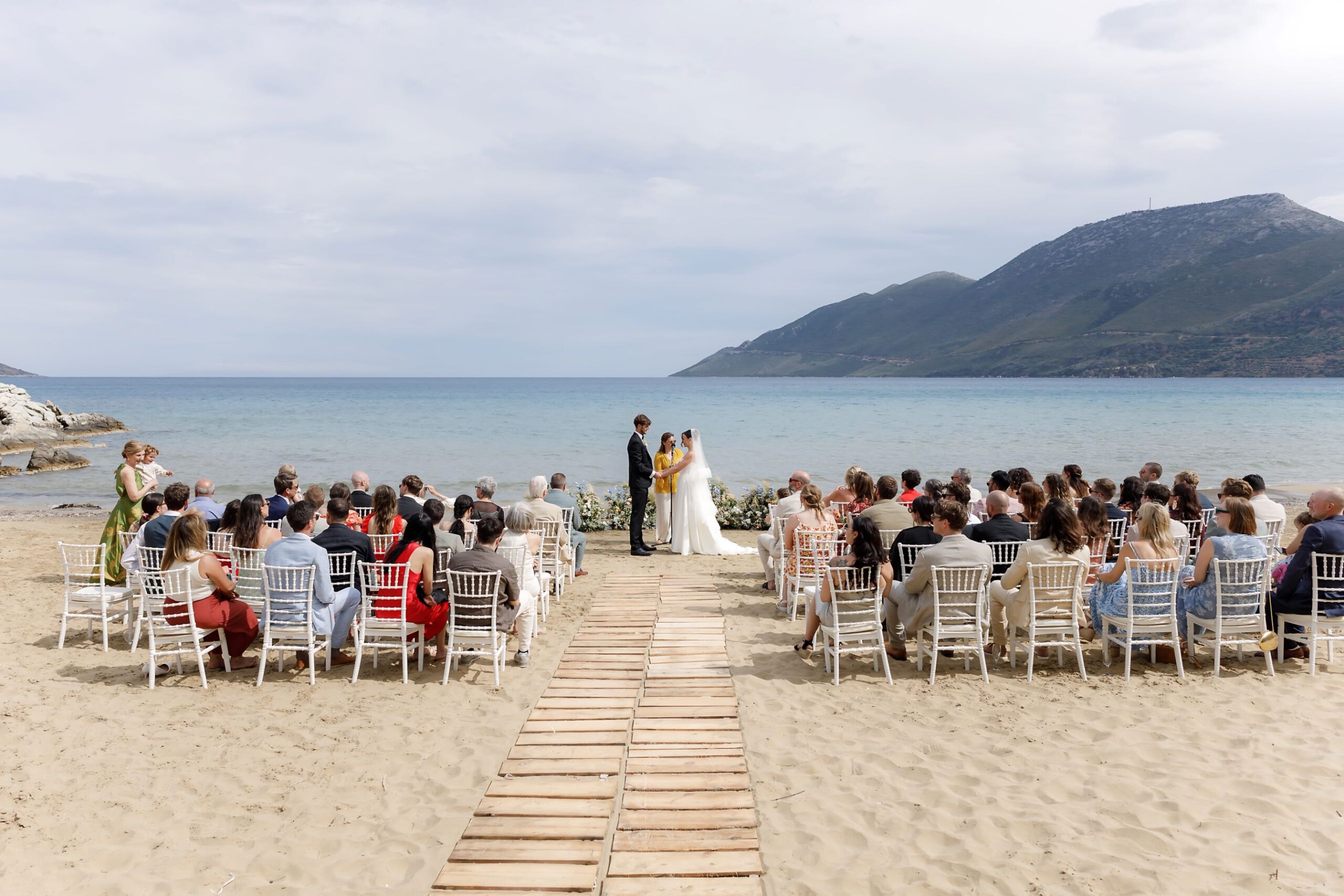 This seaside wedding in Mani captured the region’s unique charm with simplicity and heartfelt moments. The ceremony took place by the sea in a quiet, stunning location — surrounded by stone, olive trees, and the endless blue of the Mediterranean. A symbolic ceremony, free from unnecessary formalities, filled with genuine emotion and authenticity.